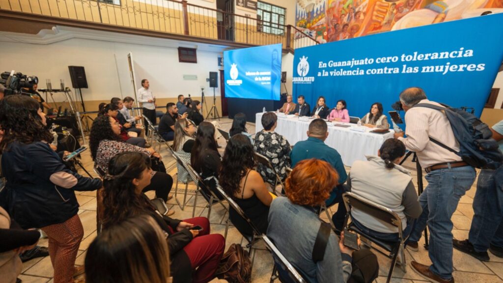 La primera corresponde talleres de prevención de la violencia contra las mujeres y desaparición de personas. El objetivo era que la Secretaría de Educación de Guanajuato impartiera estos talleres en 183 escuelas; esta meta se ha superado ampliamente; al mes de agosto ya se ha intervenido en 251 planteles, con una atención a más de 72 mil estudiantes de secundaria y preparatoria.