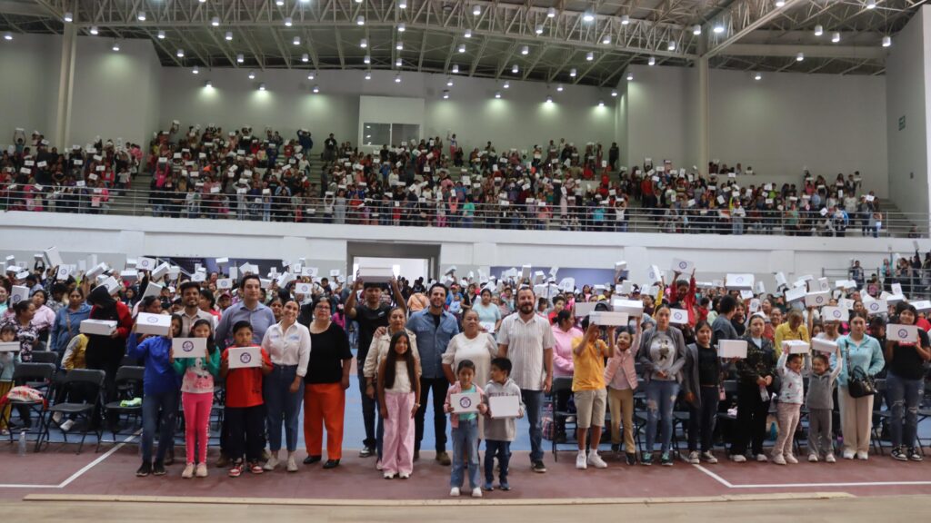 Autoridades municipales, encabezadas por el Presidente Municipal, Chelis Oliveros Usabiaga y la Presidenta del Patronato del DIF, Fátima Hernández Rivera, hicieron la entrega a los más de 2 mil niñas y niños.