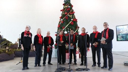 Posteriormente, la Camerata de la Nueva España deleitó a las y los asistentes con las piezas Hua hua naca (anónimo), Adeste Fideles, La vieja, Fum fum fum, Chiquiriquitín, Buenas noches Mariquita, Villancico Mexicano, Sobre Ana María, Gatatumba y Posada Mexicana.