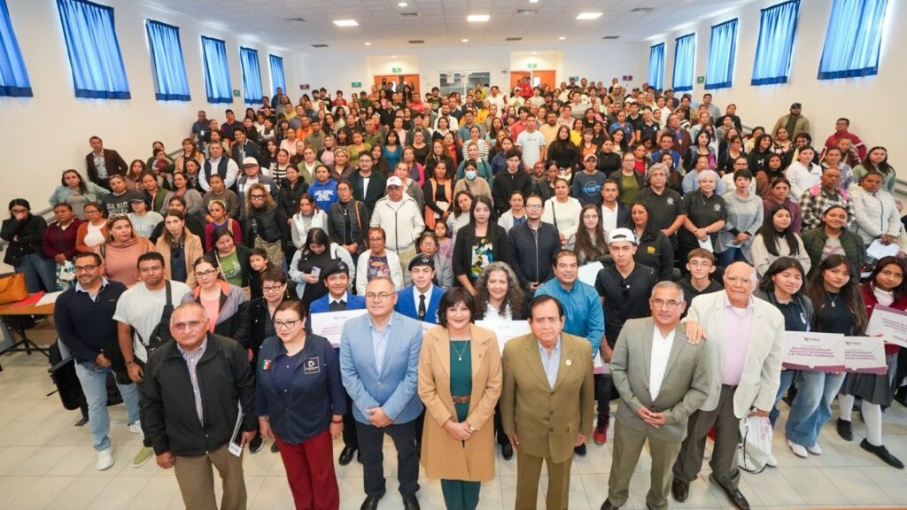 Celaya, Guanajuato: a 12 de noviembre de 2025.- En el auditorio de la Universidad Pedagógica Nacional 112, el presidente municipal Juan Miguel Ramírez Sánchez, encabezó el acto de entrega de 278 becas del programa “Movilidad Estudiantil Nacional e Internacional y de Concursos Académicos”, con una inversión municipal de 2 millones 455 mil pesos.