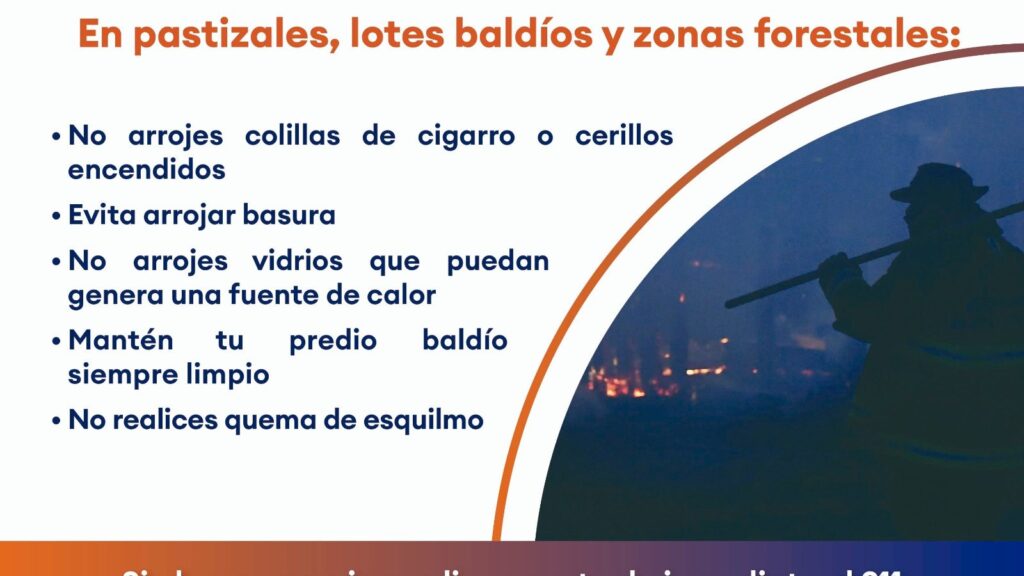 “Son malas costumbres de algunas personas que deben hacer conciencia del severo daño que pueden ocasionar si se les llega a descontrolar la mala práctica de quema de basura, llantas o maleza. Han sucedido casos que las llamas se propagan rápidamente y alcanzan propiedades cercanas, situaciones que generan riesgos mayores y que requieren la intervención de los cuerpos de emergencia”, destacó Martínez Negrete.