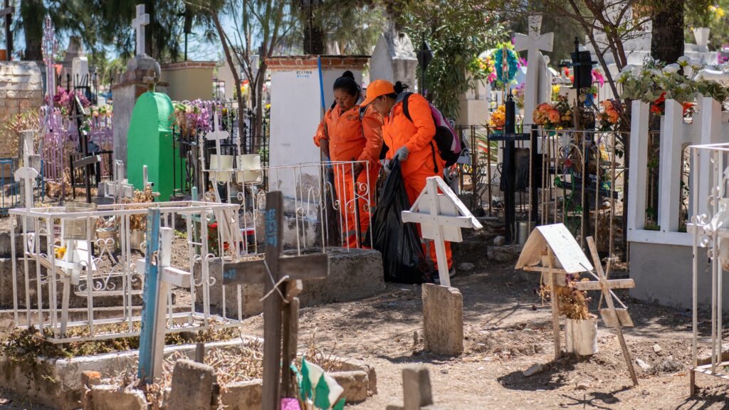 Al mismo tiempo, cuadrillas municipales han intensificado la limpieza y el embellecimiento en los panteones municipales para ofrecer espacios dignos, ordenados y seguros durante estas fechas tan significativas. Además, se han realizado labores de pintura, poda, mantenimiento de áreas verdes y limpieza en los panteones Luz Eterna, Guadalupe, Los Rodríguez y San José de los Allende, garantizando espacios adecuados para recibir a las familias. En el panteón de San Juan de Dios permanecerá cerrado, ya que continúan sus trabajos de conservación por su valor histórico, manteniéndolo en óptimas condiciones como patrimonio de todos los sanmiguelenses.