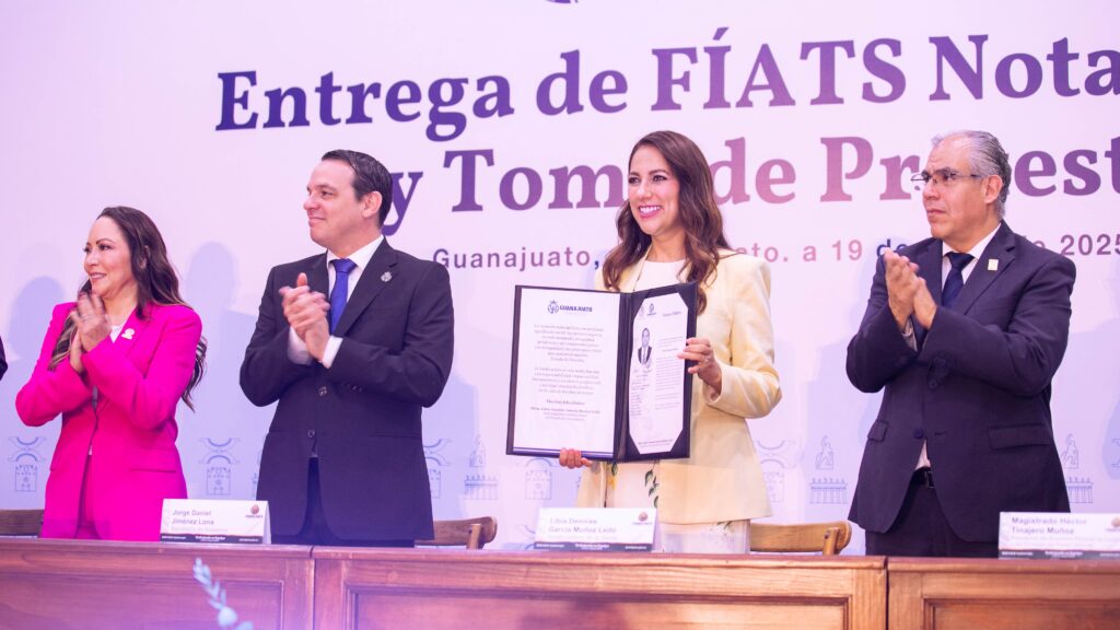 La Gobernadora de la Gente, Libia Dennise García Muñoz Ledo, entregó FÍATS notariales y tomó de protesta, a las personas que aprobaron el examen de oposición para cubrir vacantes de notarios en el Estado de Guanajuato.
