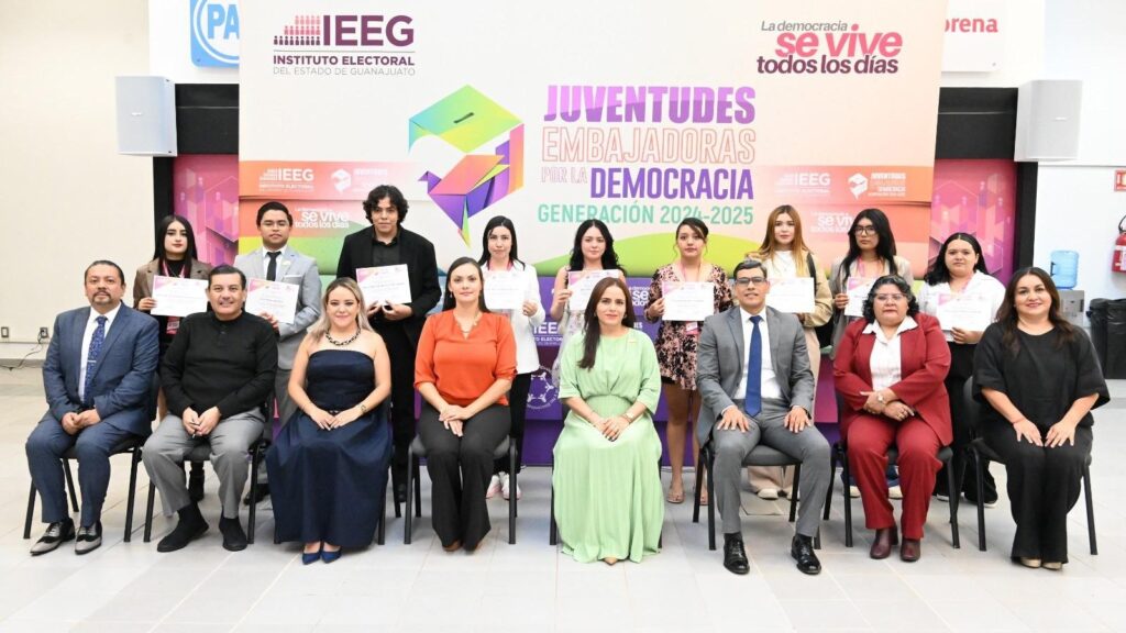 El Instituto Electoral del Estado de Guanajuato (IEEG) a través de la Comisión de Cultura Política Electoral (CCPE) premió a las personas ganadoras del programa Juventudes Embajadoras por la Democracia Generación 2024-2025.