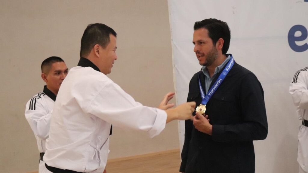 “Como entrenador, no sólo estoy enseñando taekwondo, les estoy enseñando la vida a mis alumnos. Lo importante no es una patada o un golpe bonito, lo importante es disciplina, actitud, respeto y autocontrol, eso es taekwondo”, dijo y entregó al Presidente la Medalla Honorífica traída desde Corea del Sur en reconocimiento a la labor comunitaria en los Faros del Saber