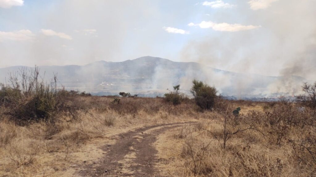 El fuego consumió vegetación compuesta por pasto, gatillal, hojarasca, composta, huizache, mesquite y cactáceas, lo que favoreció su propagación en terreno agreste.